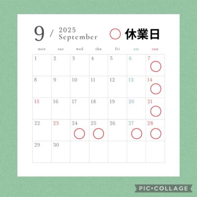 2025年9月の営業情報です 2025年09月01日 入荷情報 2025年9月の営業情報ですが、24、25、27日が諸用のため休業となります。 また毎週日曜日が休業日となります。 どうぞご了承ください。よろしくお願いいたします。 [続きを読む]